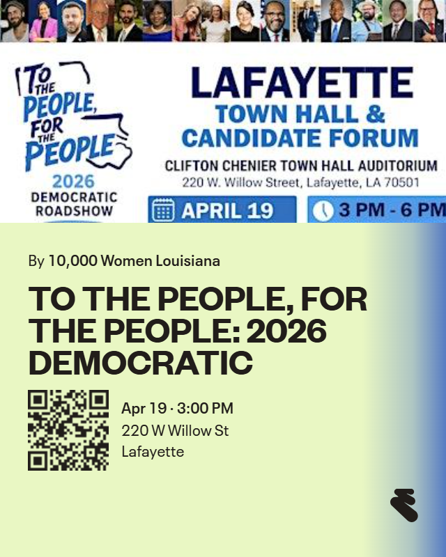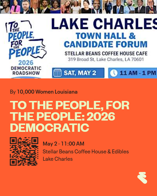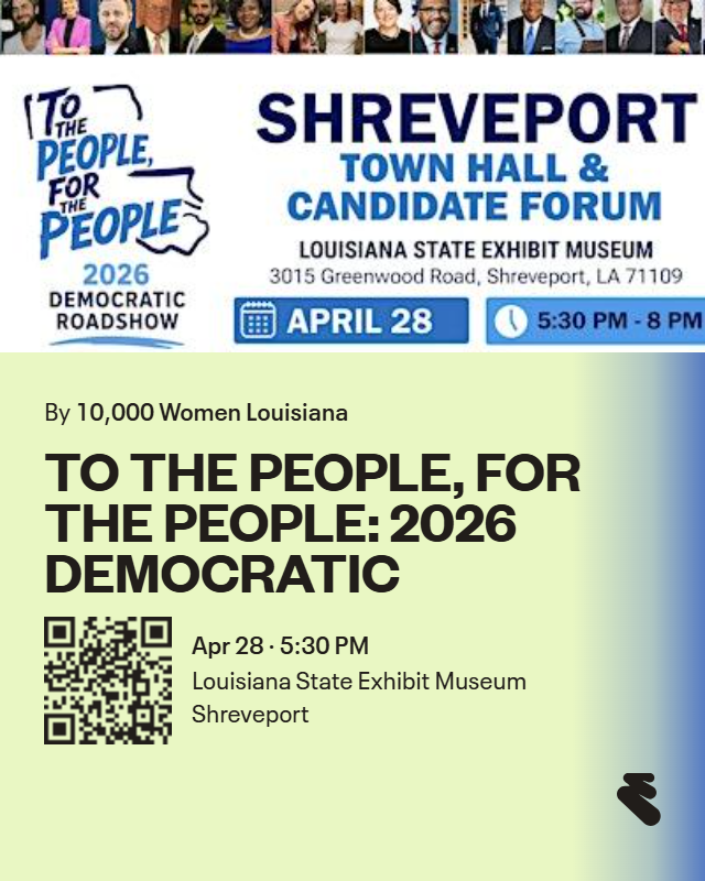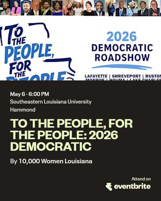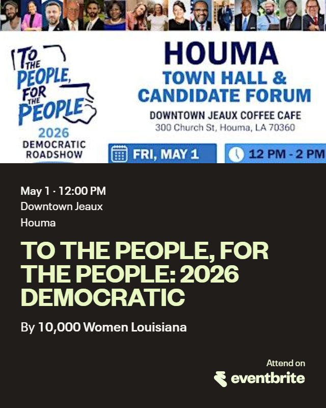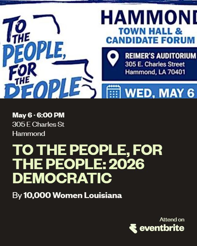 Hosted by a coalition of media, civic, and advocacy organizations, including 10,000 Women Louisiana, The Bayou Progressive, Indivisible Baton Rouge and Louisiana NAACP.