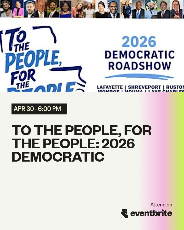 The “To The People, For The People” 2026 Democratic Roadshow is a series of live debates, forums, and town halls bringing Democratic candidates for U.S. Senate and Congress into communities across Louisiana ahead of the May 16 primary election.